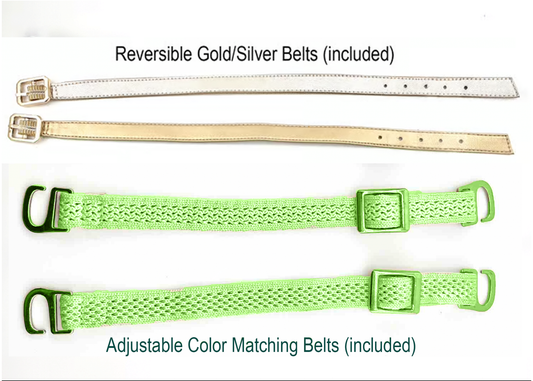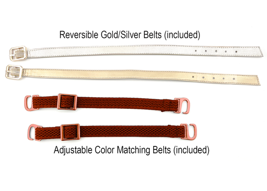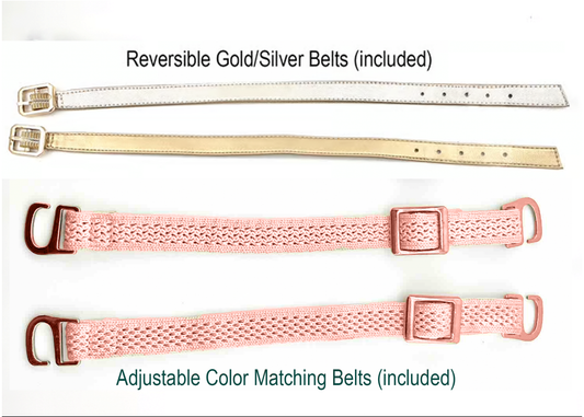 Elevate every step with the reversible metallic belt in gold and silver. Designed for versatility, it transforms to an ankle strap or to a classic Mary Jane—included with every pair!